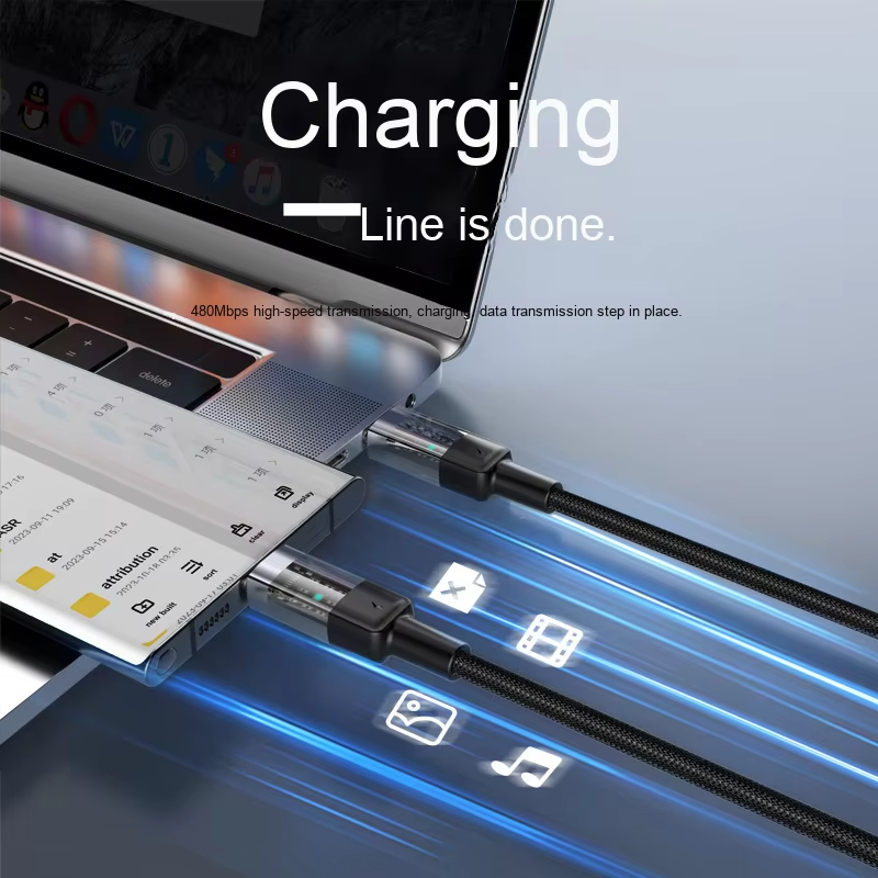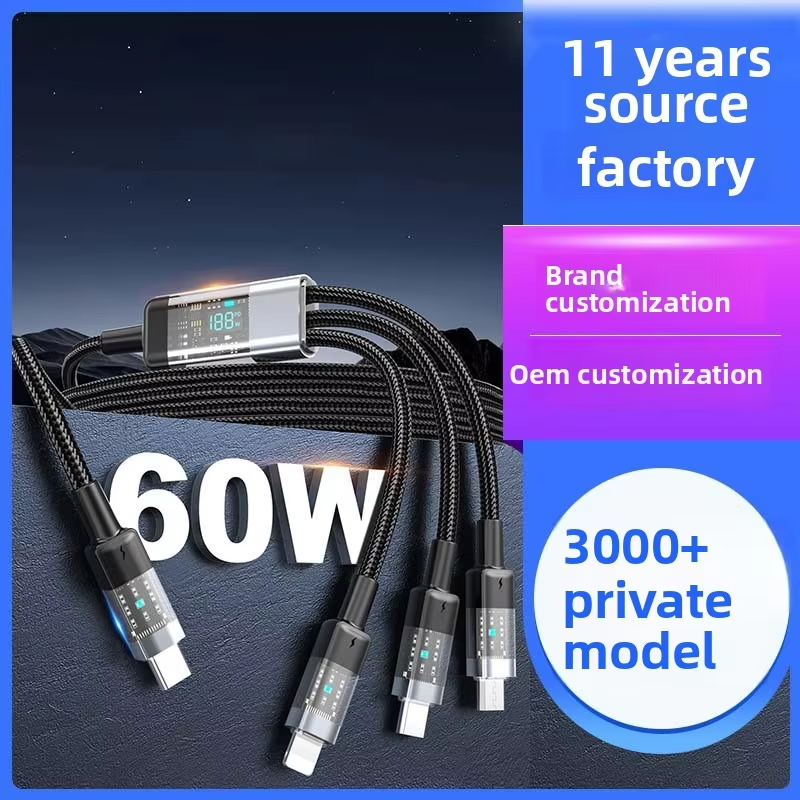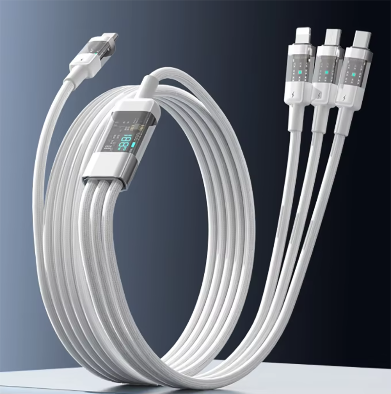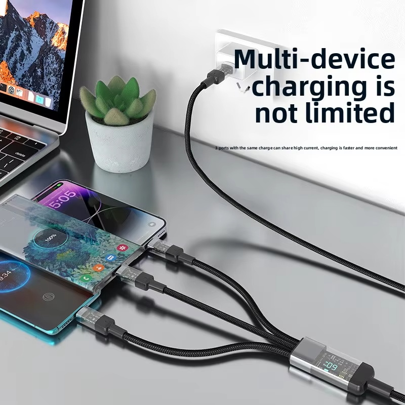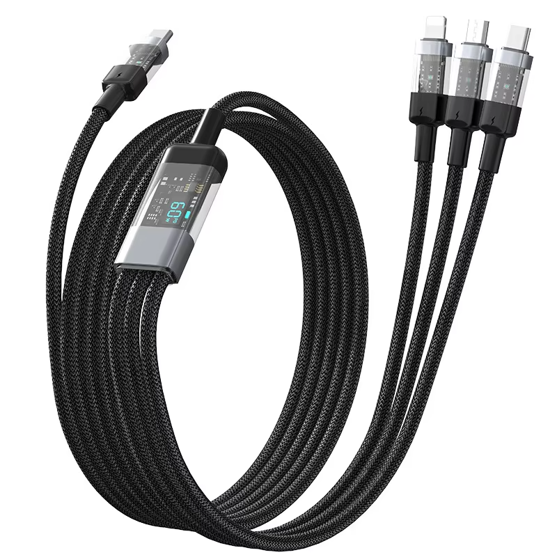 3-in-1 2m Transparent Nylon Jacket PC Cable Fast Charging 1-to-3 Card Display Compatible with for Ap