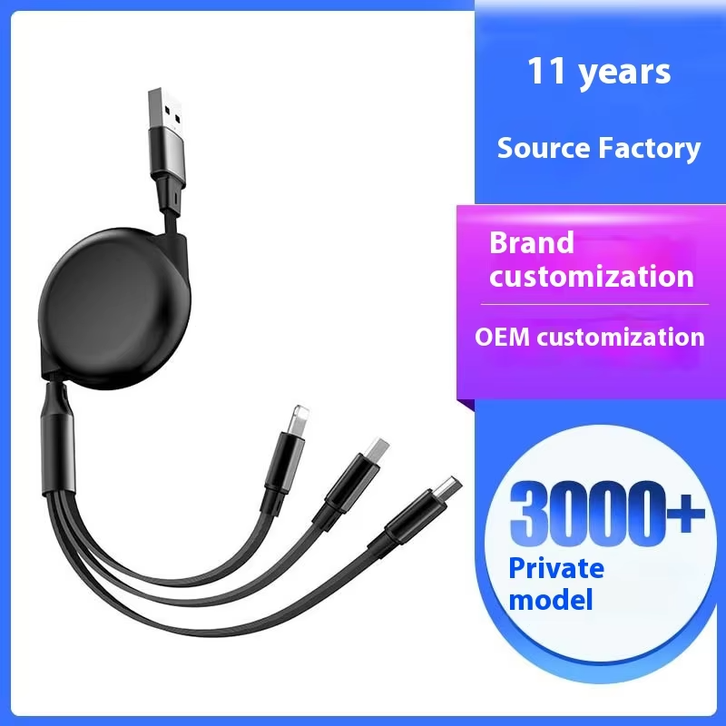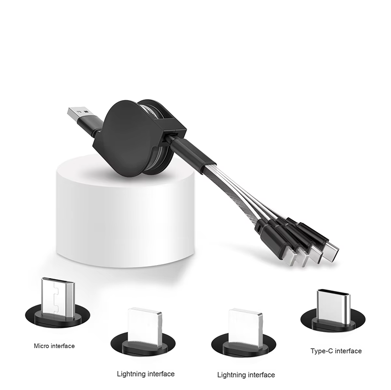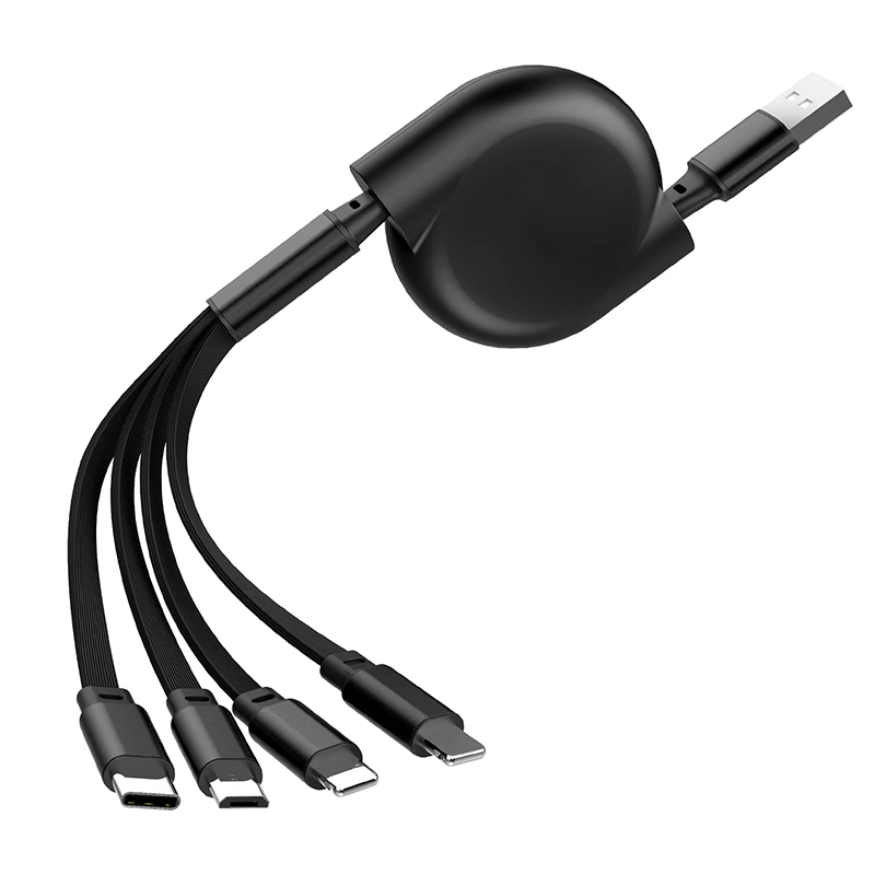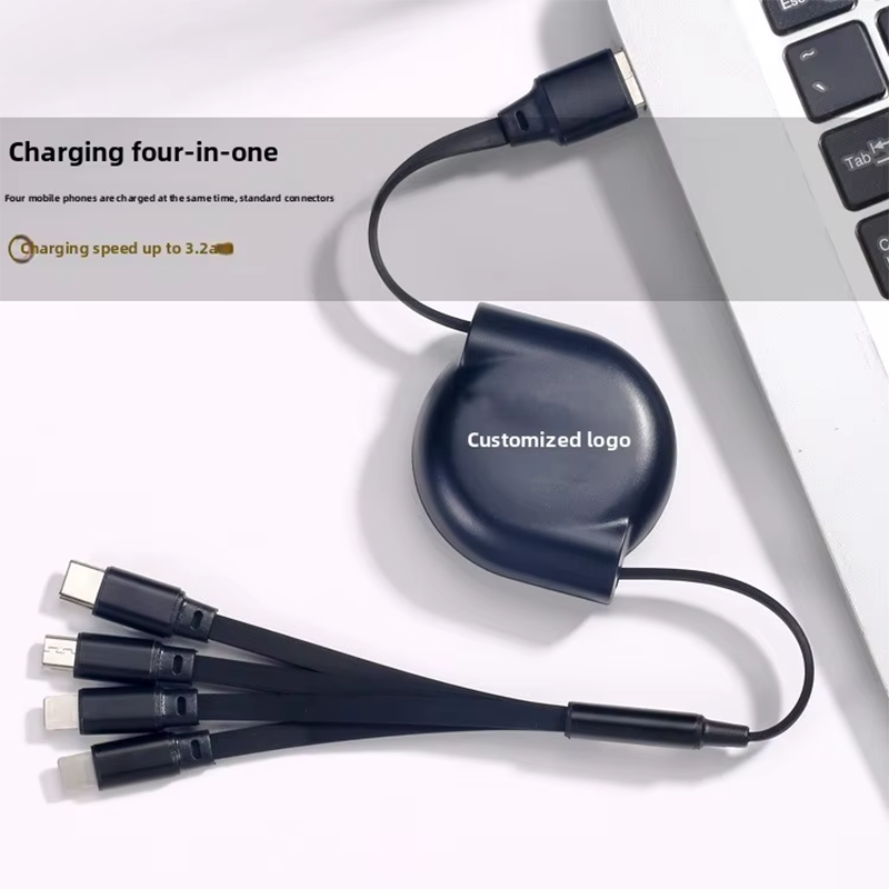 4-in-1 Retractable Data Cable for Mobile Phone 3A Fast Charging with 2M Length Customizable Logo Pri