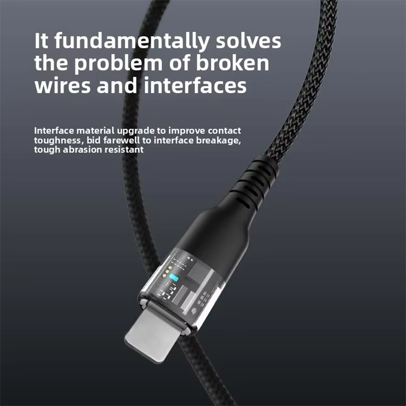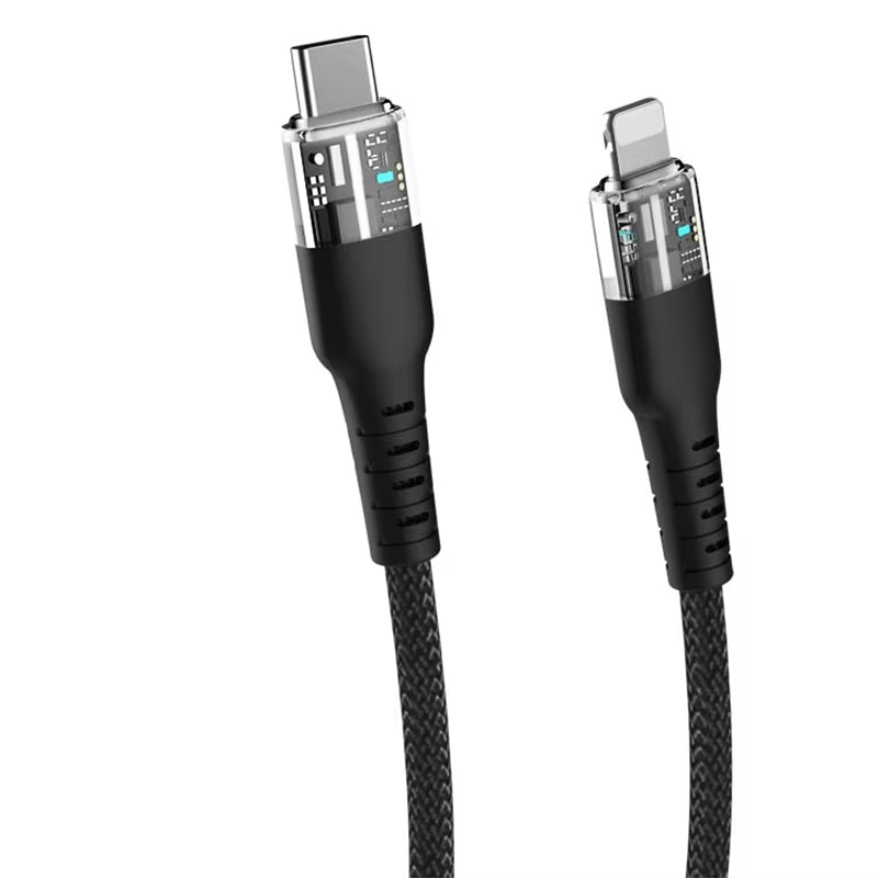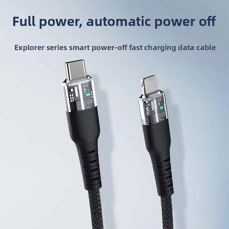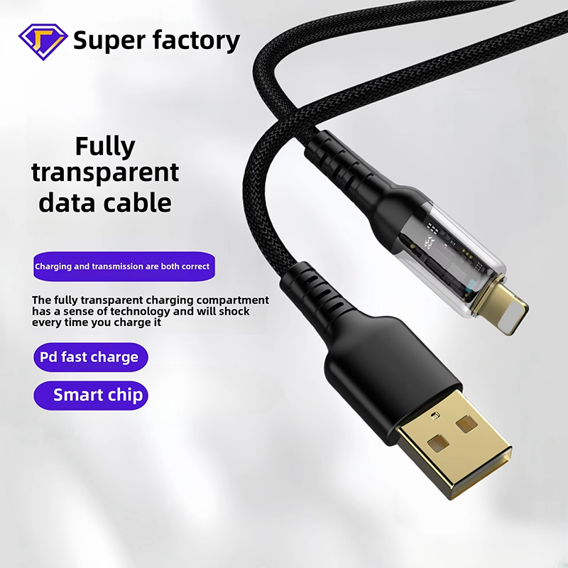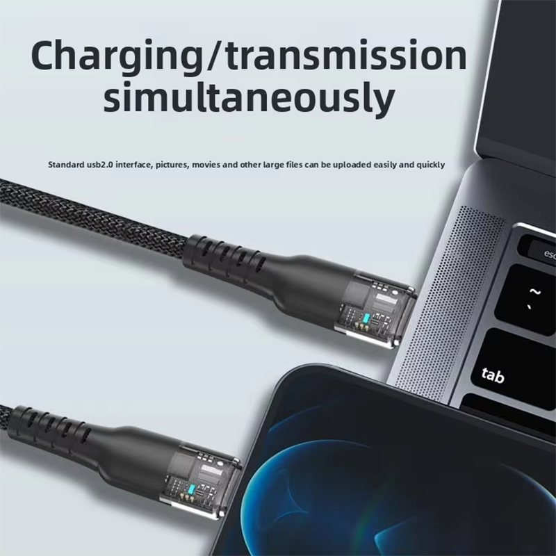 60W Pd Fast Charging 1M Type-C Data Cable Fully Transparent Smart Power-Off Luminous Charging Featur