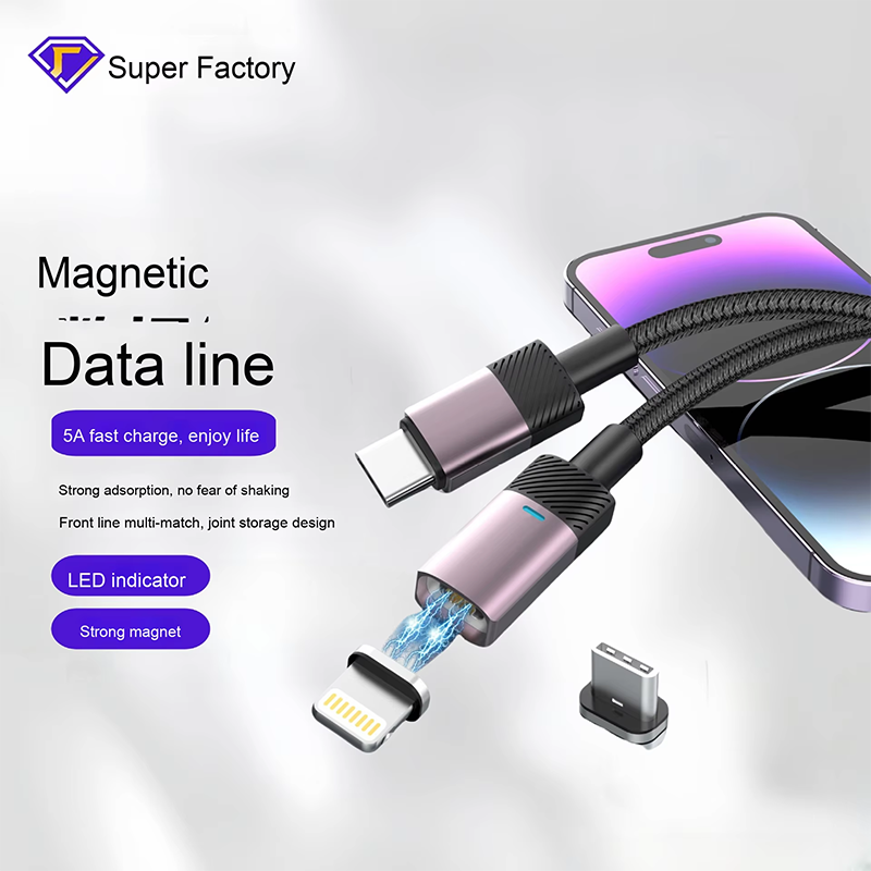 Magnetic 3-in-1 PD 30W Fast Charging Cable Flash Charging Compatible for Apple iPhone & for Huaw
