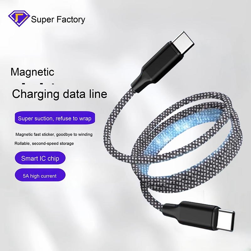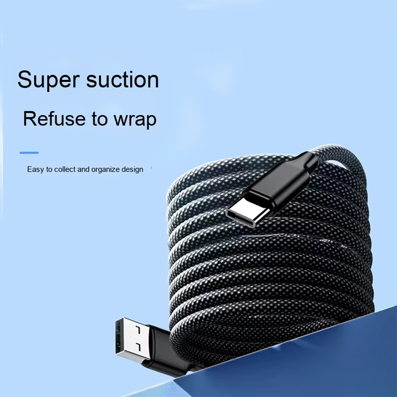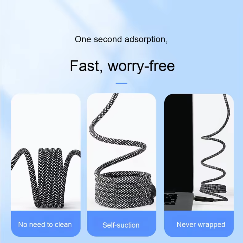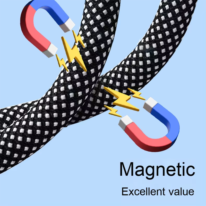 Magnetic Magic Rope Data Cable PD60W Fast Charging Right-Angle Connectors 180 Degree Compatibility f