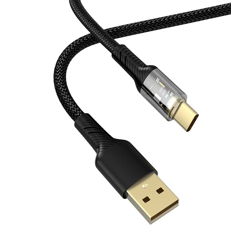 Transparent Glowing Braided PVC Charging Cable Gold-Plated Type-C Super Fast Charging Compatible for