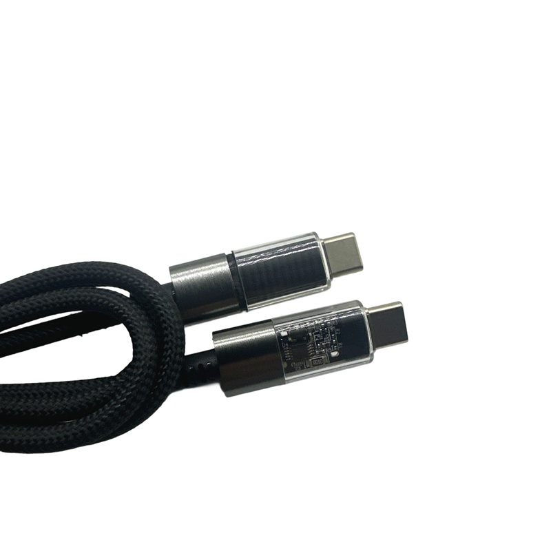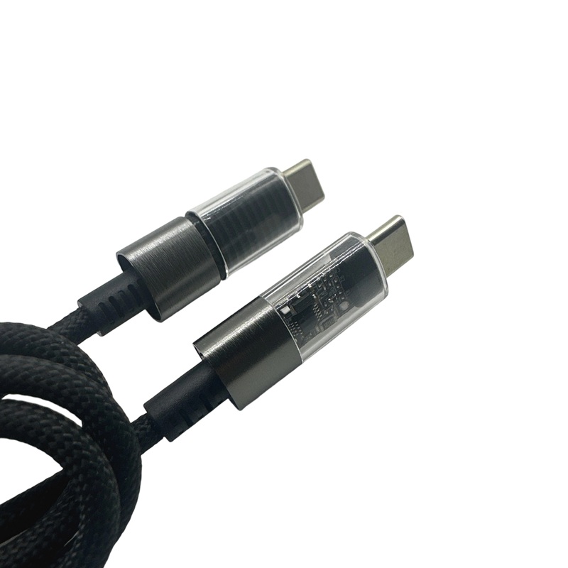 1m Aluminum Alloy Transparent Connector Type-C Data Fast Charging Cable 2-in-1 Nylon Jacket with Foi