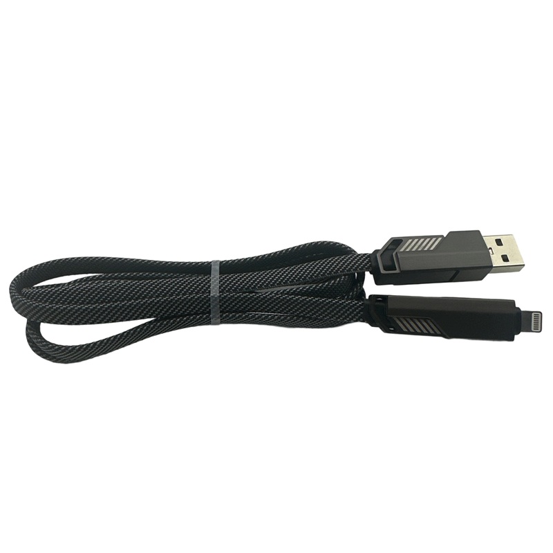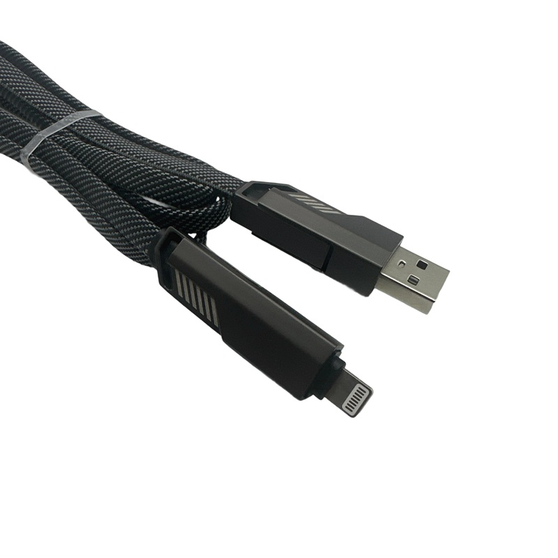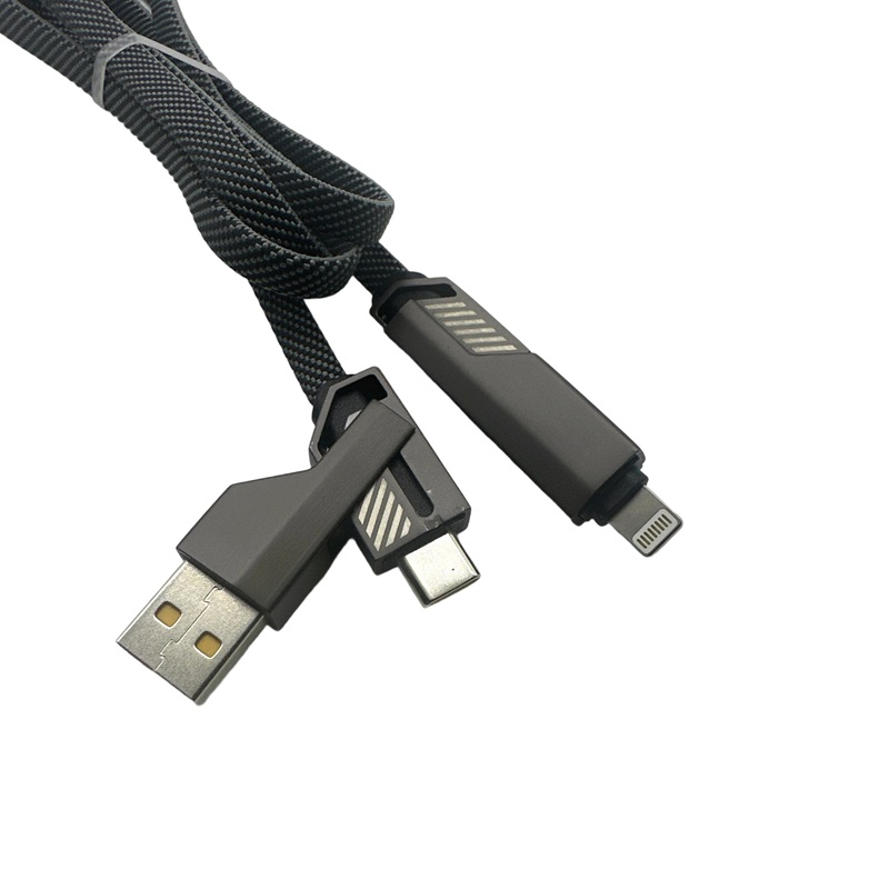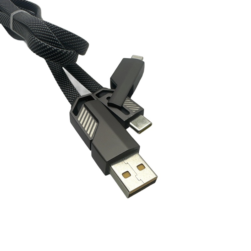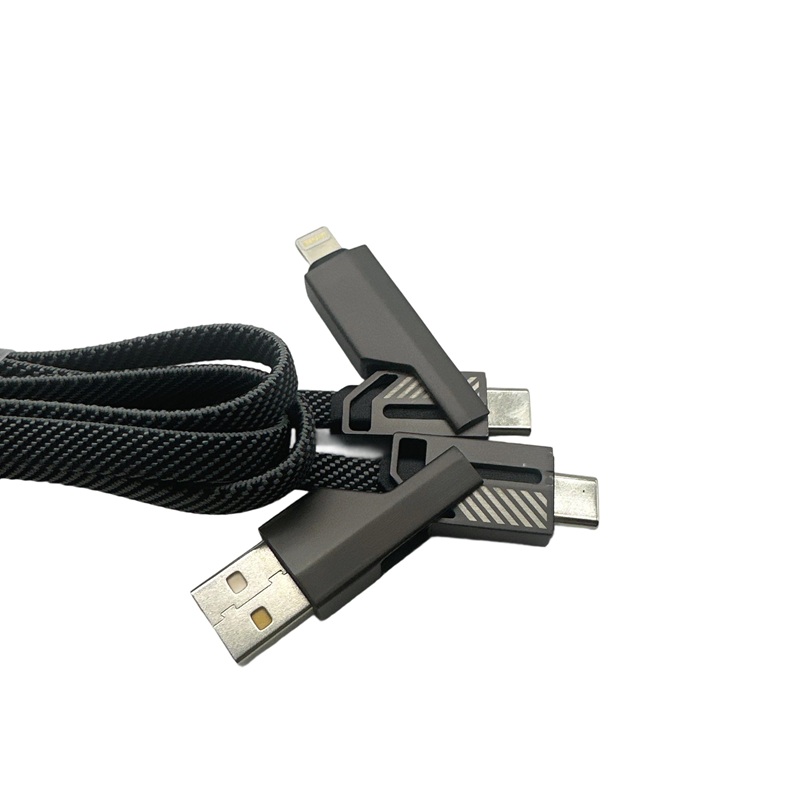 Customized 1M 3A Fast Charging 4-in-1 Flat Metal Case USB Android Power Bank Type-C Connector Nylon