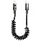 Features a high-resilience helical coil cable body that freely extends and retracts to adapt to different usage distances, effectively preventing cable tangling.