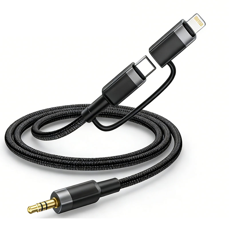 3.5mm Male to Lightning + Type-C Audio Cable
